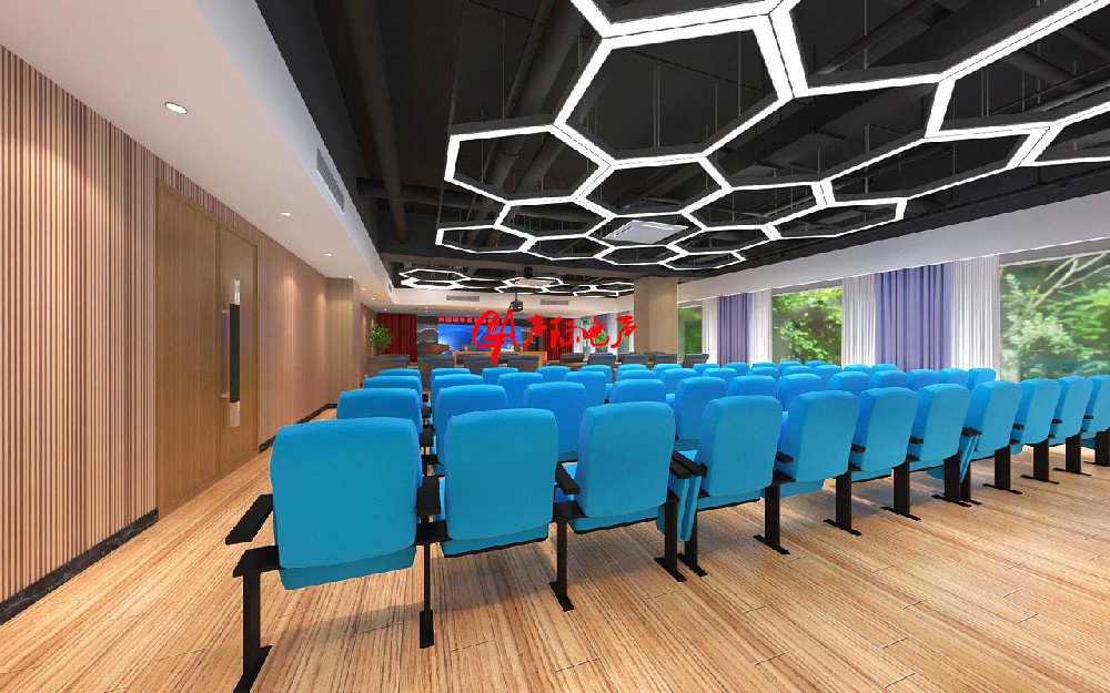 聲學設計:根據報告廳的麵積和容積,設計合理的聲學環境,選擇合適的音響設備,確保語音清晰、音量足夠。