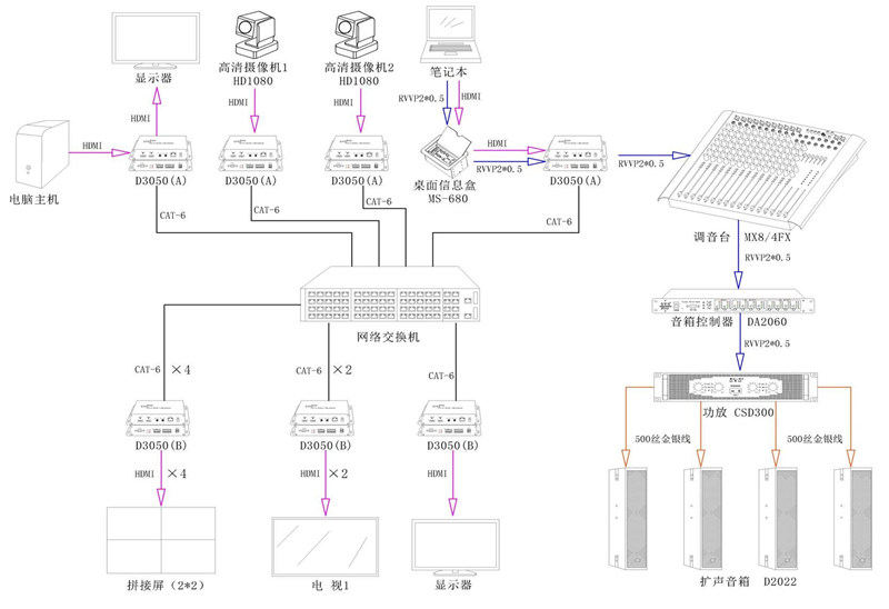 六、係統音視頻信號連接示意圖