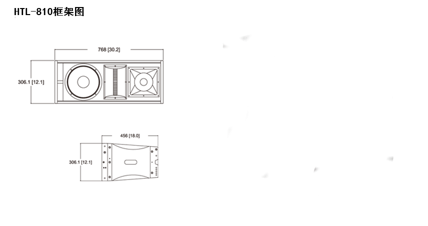 HTL-810的低頻部分采用了一隻10",3"音圈的大功率釹磁單元。倒相式負載設計將HTL-810的低頻頻響延伸到號角的低頻下限更低的頻點,HTL-810的聲學結構設計將號角的高效率優點和倒相式箱體的低頻延伸性優點完美的結合在一起。